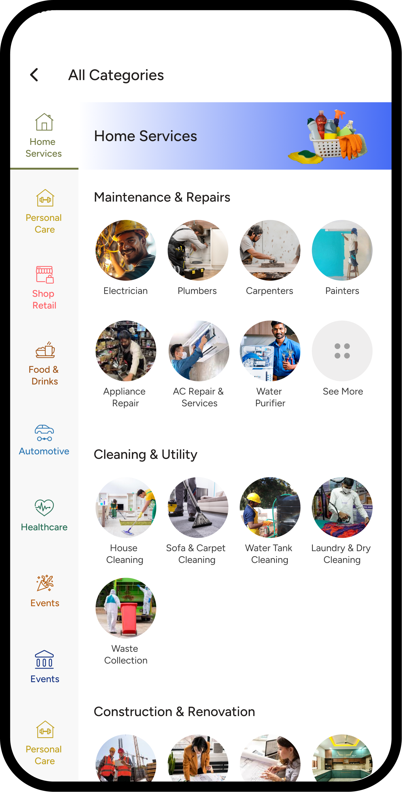 Access home cleaning, repairs, appliance maintenance, and doorstep services from verified service providers.