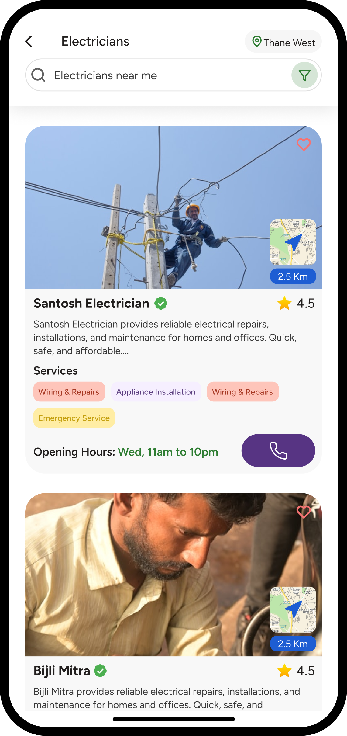 Find trusted professionals nearby — electricians, plumbers, technicians, and service experts available instantly.