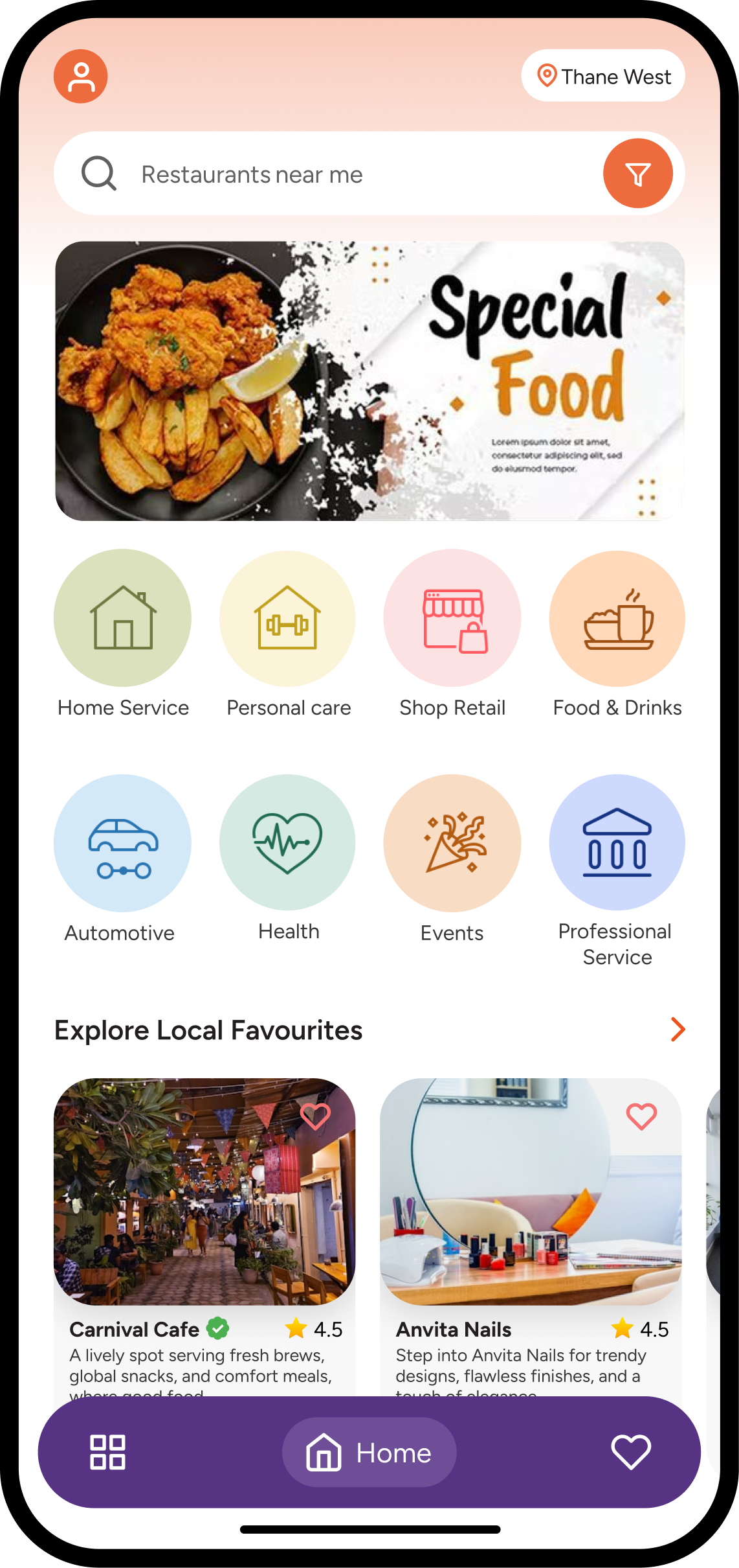 Discover nearby businesses instantly with location-based search. Users can explore stores, services, and categories around them in real time with accurate distance and map integration.